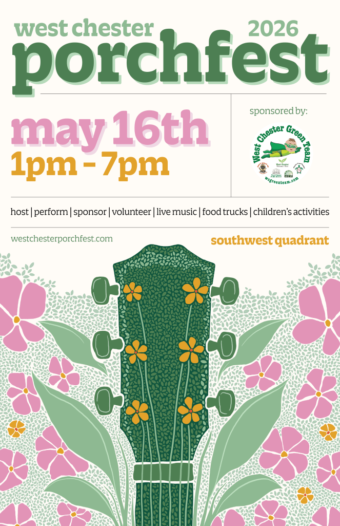 5th Annual West Chester Porchfest will be on May 16, 2026 from 1:00pm to 7pm!